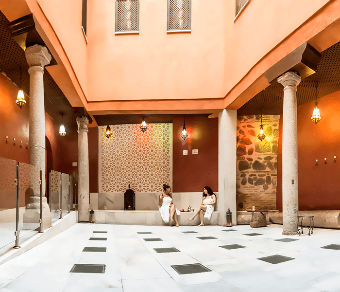 Today, the Medina Mudéjar Arab Baths comprise the tradition of the multiple public baths which existed in the city during the Middle Ages, designed respecting the original structure of the building, the uneven courtyard, the Islamic wall from the Twelfth century, the tiles from back in time and the old well.